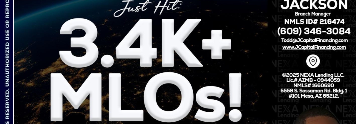 3.4K MLOs - Jackson Capital -Branch ManagerHi, my name is Jackson Capital. I’m a Loan Officer with NEXA Mortgage LLC., offering personalized mortgage solutions, fast customized quotes, great rates and service with integrity.