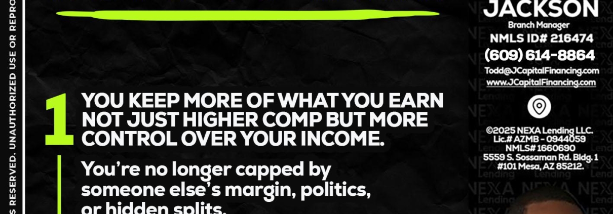 7 THINGS (1) - Jackson Capital -Branch ManagerHi, my name is Jackson Capital. I’m a Loan Officer with NEXA Lending LLC., offering personalized mortgage solutions, fast customized quotes, great rates and service with integrity.
