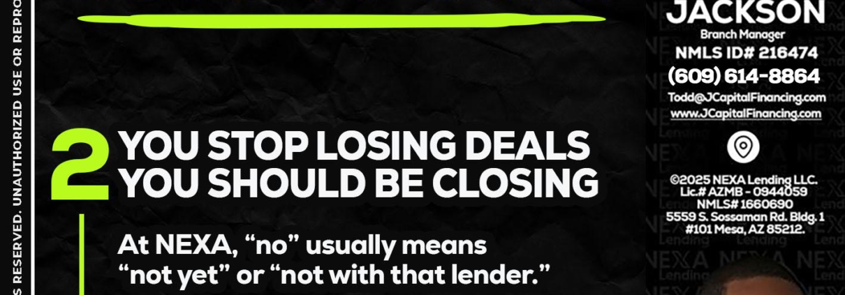 Hi, my name is Jackson Capital. I’m a Loan Officer with NEXA Lending LLC., offering personalized mortgage solutions, fast customized quotes, great rates and service with integrity.