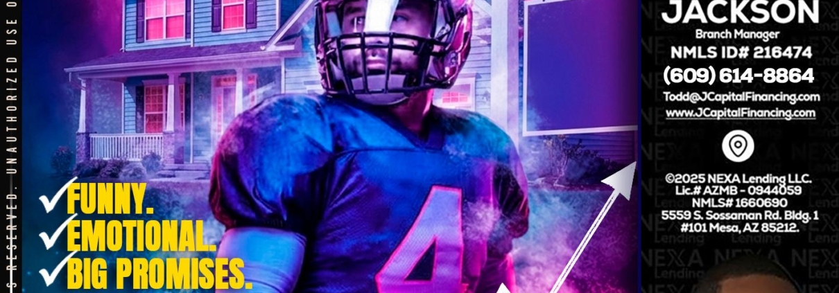 every Super Bowl - Jackson Capital -Branch ManagerHi, my name is Jackson Capital. I’m a Loan Officer with NEXA Lending LLC., offering personalized mortgage solutions, fast customized quotes, great rates and service with integrity.