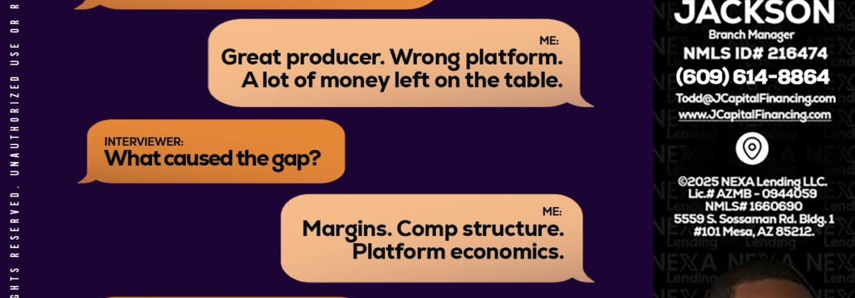 RAPID FIRE - Jackson Capital -Branch ManagerHi, my name is Jackson Capital. I’m a Loan Officer with NEXA Lending LLC., offering personalized mortgage solutions, fast customized quotes, great rates and service with integrity.