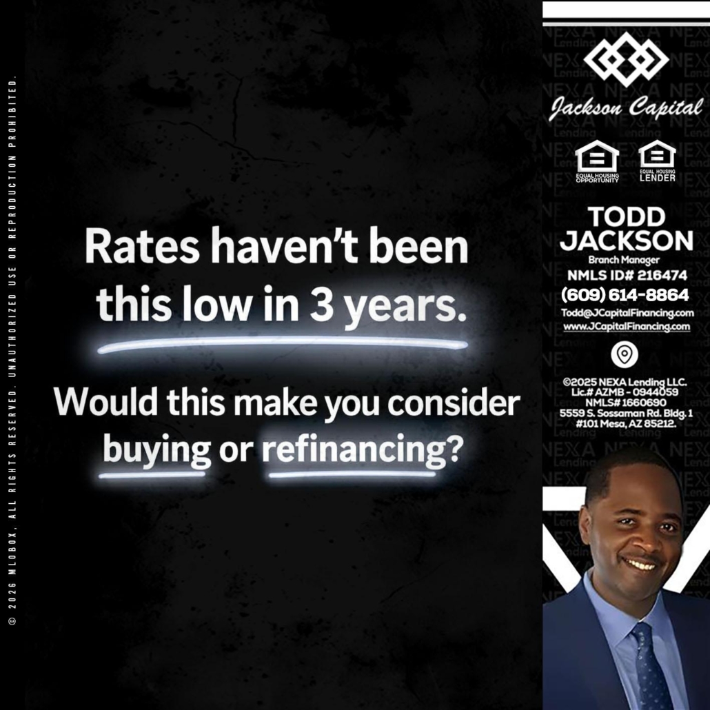 RATES HAVEN'T - Jackson Capital -Branch ManagerHi, my name is Jackson Capital. I’m a Loan Officer with NEXA Lending LLC., offering personalized mortgage solutions, fast customized quotes, great rates and service with integrity.