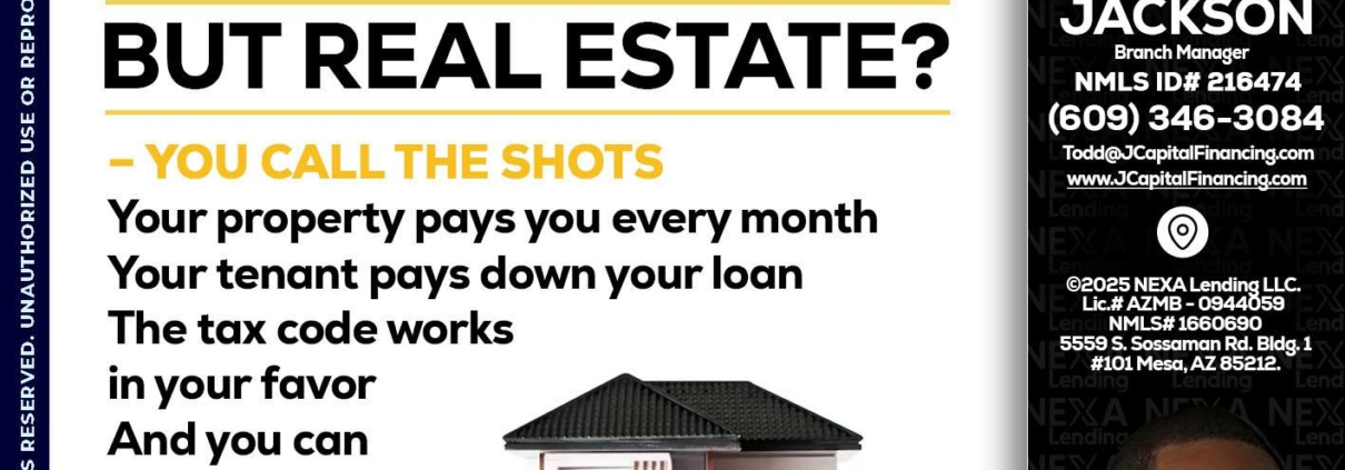 Hi, my name is Jackson Capital. I’m a Loan Officer with NEXA Mortgage LLC., offering personalized mortgage solutions, fast customized quotes, great rates and service with integrity.