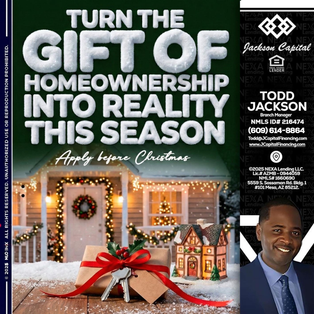 TURN GIFTS - Jackson Capital -Branch ManagerHi, my name is Jackson Capital. I’m a Loan Officer with NEXA Lending LLC., offering personalized mortgage solutions, fast customized quotes, great rates and service with integrity.